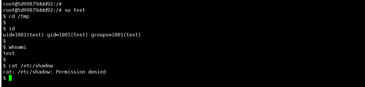 此时,我们创建一个普通的用户 test ,切换到普通的用户